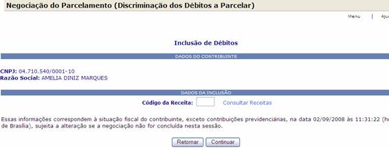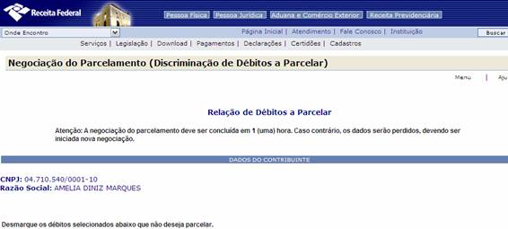 do Parcelamento (Discriminação dos Débitos a Parcelar), na página da RFB na