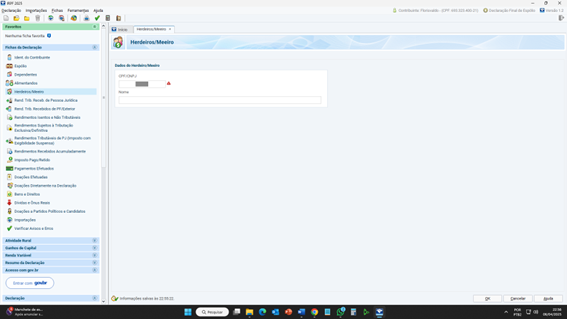 Os herdeiros, meeiro e demais beneficiários da herança devem informar em suas declarações de ajuste anual, no campo de bens e direitos que receberam determinado bem ou direito, advindo da partilha de ....(nome), CPF..... na discriminação e colocam o valor deste na coluna de valores. Poderá optar por inserir na declaração o bem/direito pelo valor original ou valor de mercado. Veja na sequência.